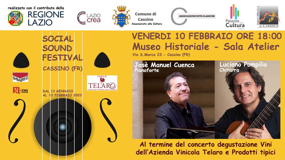 Venerdì 10 febbraio concerto di chiusura del Social Sound Festival alle ore 18 presso la Sala Atelier del Museo Historiale di Cassino. L’ultimo evento vedrà due [...]