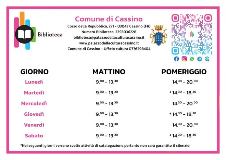 La Biblioteca comunale del Palazzo della Cultura di Corso della Repubblica 271 amplia l’orario di apertura, per soddisfare le tante richieste fatte dai giovani studenti che la frequentano ogni giorno. Le sale [...]