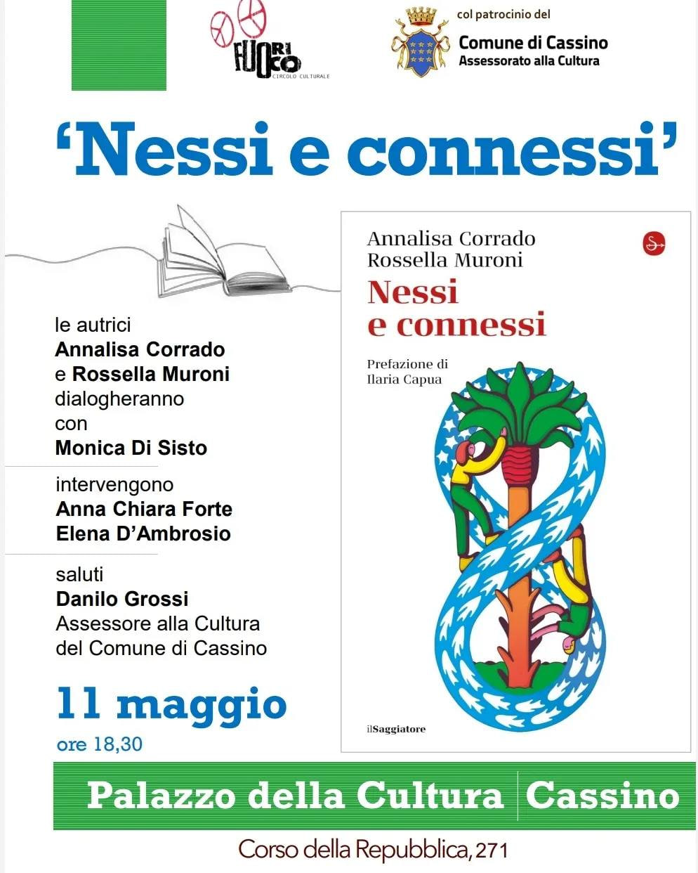GIOVEDÌ 11 MAGGIO alle 18.30 presso il Palazzo della Cultura, si terrà la presentazione del libro NESSI E CONNESSI. Potrete incontrare le fantastiche autrici Rossella Muroni e Ilaria Capua, ad accompagnarle in questo viaggio ci saranno anche Elena d’Ambrosio, Monica Di Sisto e Anna Chiara Forte, insieme a Danilo Grossi, Assessore alla cultura del comune di Cassino.